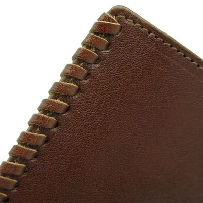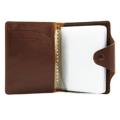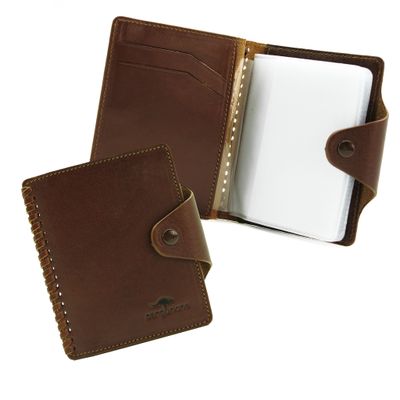 Кожаная визитница на 20 карточек ручной работы. Закрывается на кнопку. Внутри 10 файлов для размещения 20-ти карточек, а также 4 удобных кармашка.