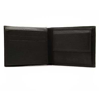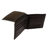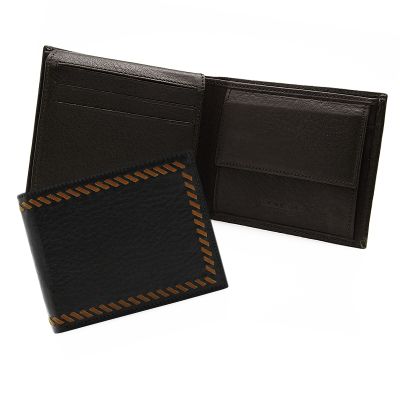 Мужское портмоне из натуральной кожи с откидным блоком. Модель обладает ярким, уникальным дизайном - фактура кожи отлично сочетается с плетением "косой стежок" по всему контуру портмоне. Современный дизайн в данной модели сочетается с комфортом в использовании. Есть все необходимые отделения и кармашки - ничего лишнего! Внутри 2 отделения для купюр, 6 кармашков для карточек, отделение для мелочи на кнопке, удобное окошко-сеточка. Размер: 11 х 9 см Материал: натуральная кожа Цвет: темно-коричневый