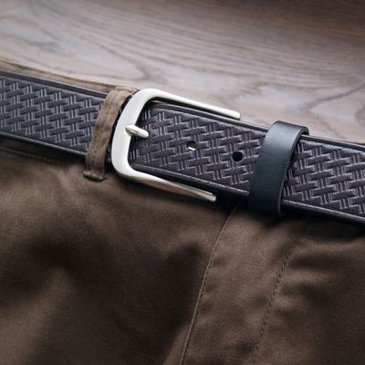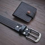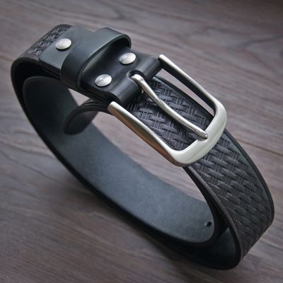 Классический мужской ремень из натуральной кожи с тиснением. Подойдет к классическому костюму. Добротная стальная пряжка, надежное крепление на 4 болтах, элегантное тиснение. Изготавливается индивидуально под человека, возможен индивидуальный подбор оттенка, также нужно будет сообщить примерный размер одежды. Цена набора "портмоне + ремень" – 5500 руб. Работа под заказ. Срок изготовления – 7 дней. Доставка по всей России через Boxberry, DPD.