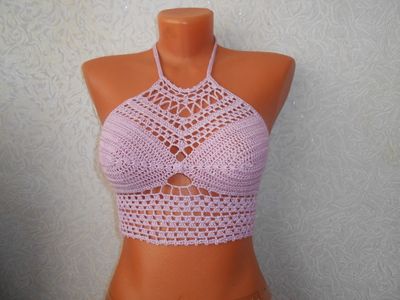 Кроп топ связан крючком из тонкого мерсеризованного хлопка,пряжа "СОСО"