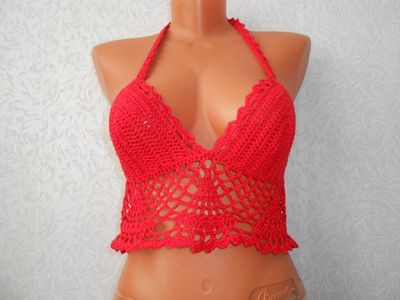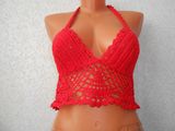 Ярко красный кроп топ связан крючком из тонкого мерсеризованного хлопка,пряжа "Успешная"
