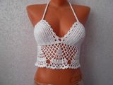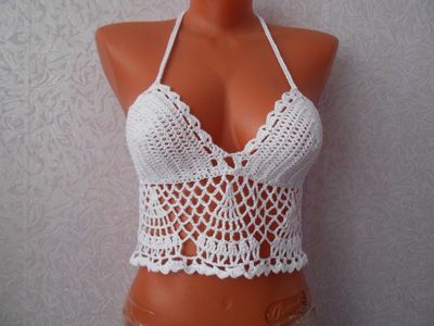 Белый кроп топ связан крючком из тонкого мерсеризованного хлопка,пряжа "Успешная"