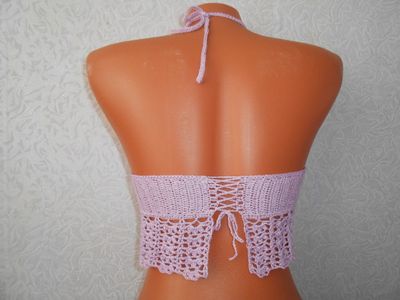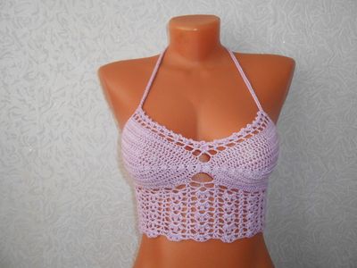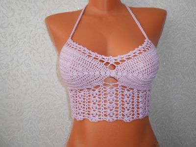 Сиреневый кроп топ связанкрючком из тонкого мерсеризованного хлопка,пряжа "Успешная"