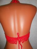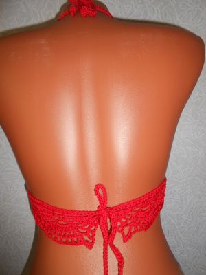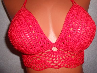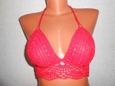 Ярко красный кроп топ связан крючком из мерсеризованного хлопка