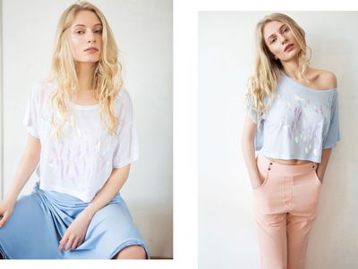 ONE SIZE (42-46) Невесомый Кроп-топ из органического эвкалипта с перламутровыми рыбками