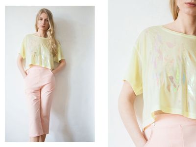 ONE SIZE (42-46) Невесомый Кроп-топ из органического эвкалипта с перламутровыми рыбками