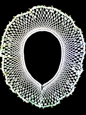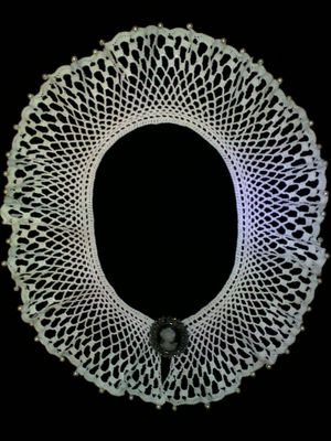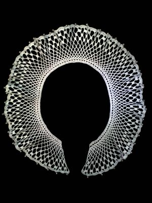 Кружевной воротник, украшенный молочными бусинами, сделает любое ваше платье праздничным и элегантным. Диаметр по внутреннему кругу -52 см. Ширина - 8 см.