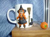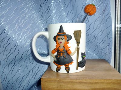 Кружка ложка с декором из полимерной глины