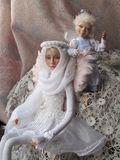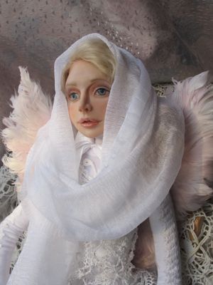 Кукла в единственном экземпляре , сделана из профессионального пластика Super Sculpey , на гибком каркасе ,может менять позы - сидеть нога на ногу... Голова на шарнире ,крутится во все стороны! Волосы натуральные вживлены в пластик ,их можно причесывать и мыть(по необходимости).