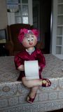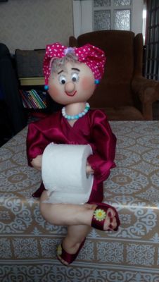 Кукла-держатель(ница) туалетной бумаги. Зовут Анжела. Добра, нежна, терпелива, доброжелательна. Не болтлива. Умеет не только держать туалетную бумагу, но и хранить все Ваши секреты, которыми Вы можете смело с ней делиться, находясь в ее обществе. Высота ( в положении сидя) 35 см.
