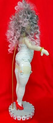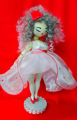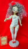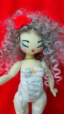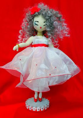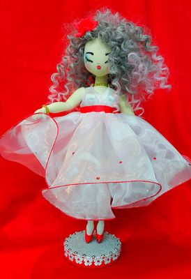 Кукла текстильная интерьерная ручной работы ...сшита из ткани...платье..обувь ..чулки снимаются... рост 40 см...идет в комплекте с подставкой и упаковочной коробкой..