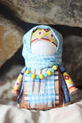 Традиционная народная кукла. Выполнена в технике изготовления кукол наших предков. Крупеничка - это мешочек с зерном, украшенный как нарядная женщина. Такая кукла символизирует достаток в доме, богатство.