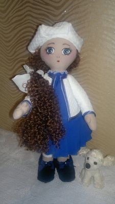 текстильная куколка Ксюша.рост 34 см.,наполнитель-синтепух,может сидеть,стоять.ручки,ножки двигаются.