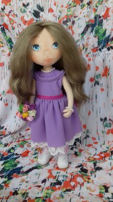 Кукла 25см руки и ноги подвижные голова поворотная волосы натуральные овечья шерсть. Возможен повтор или Ваш вариант одежды .