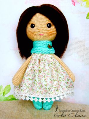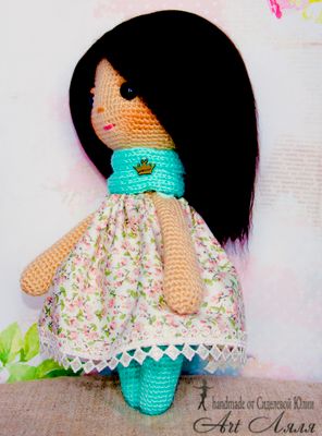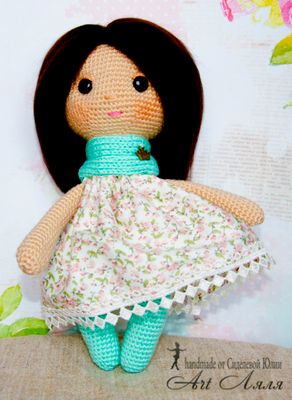 Чудное создание в легком летнем платье! Озорной взгляд))) Не даст скучать своей новой маленькой хозяйке! Связана крючком. Волосы мжно расчесывать и моделировать. Одежда снимается. ( кроме колготок)
