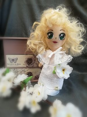 Текстильная куколка 30 см. Ручки и ножки двигаются. Платье снимается. Волосы приклеены.