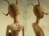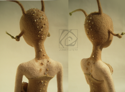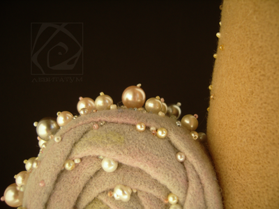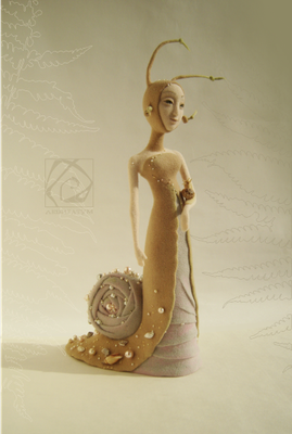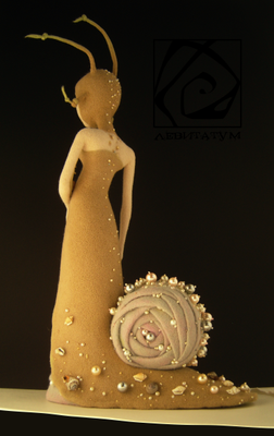 Это особое существо медленно появилось из тумана пронизанного лунным светом. Для ее глаз внешний мир еле различим. Она понимает его интуитивно. Чувствуя, слыша, вдыхая его своей кожей. Воспринимая его красоту и совершенство, конденсируя их в жемчужинах, сама являясь жемчужиной этого мира. Закрытая в себе. Погружена в свой таинственным мир, ранимый и нежный, спрятанный где-то между хрупкой раковиной и придуманной вселенной. Туда вход закрыт. Высота 40,5 см (без рожек). Длина 23 см. Изготовлена из овечьей шерсти. Сухое валяние. Украшена бисером, бусинами, ракушками. Тонировка - пастель, перламутровая пудра. Внутри тела, рук и рожек проволочный каркас. Прошита леской. Рекомендации по уходу в теме группы.