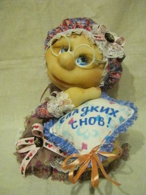 .Полукаркасная,проволочный каркас,синтепон,капроновые колготки,ситец,фланель(Китай),пластика,акриловые краски,лак,кружево,атласные ,репсовые ленты,пуговки-бантики,рост 29 см.