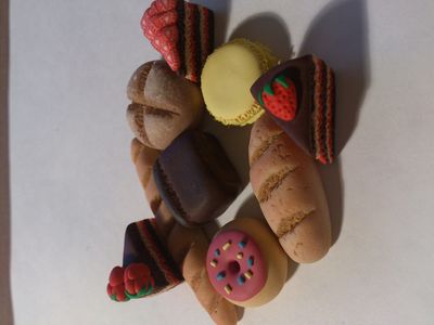 Фрукты, овощи, выпечка из полимерной глины. Очень подойдёт для детских игр. Размер примерно 3см. Цена за 1 шт. Минимальный заказ 20шт.