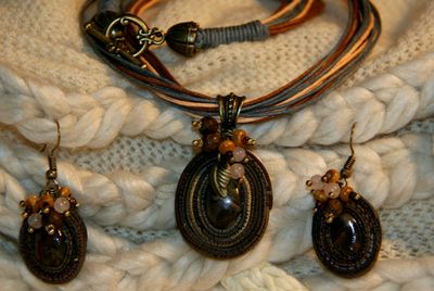 Кулон из полимерной глины на вощенном шнуре. В комплект идут серьги.