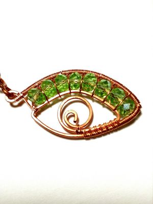 Кулон из проволоки "Глаз" - зелёный