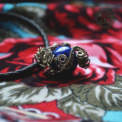 Кулон причудливой формы. Материал: нейзильбер, камень - лазурит. Камень обладает интересным рисунком и насыщенным цветом.