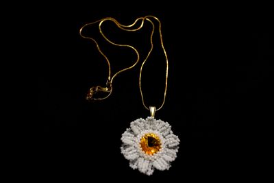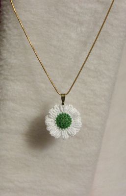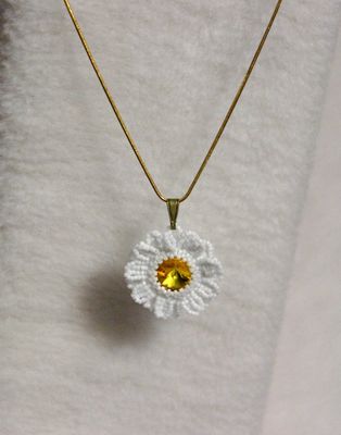 Кулон "Ромашка" с ярким солнечным риволи сваровски, оплетенным белым японским бисером. Диаметр кулона 3,5 см., длина цепочки 40 см.
