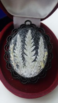 Лаконичный, но в тоже время шикарный кулон из сухоцвета, тонированного акриловой краской, и эпоксидной ювелирной смолы. Смотрится строго и подходит даже к повседневной одежде.