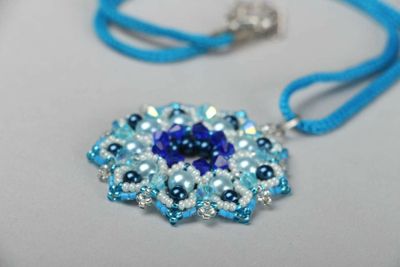 Украшение на шею, кулон из чешского бисера, искусственного жемчуга и хрусталиков.