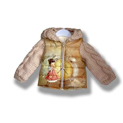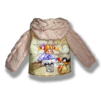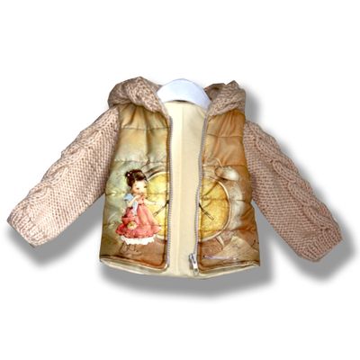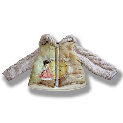 Комбинированная куртка с вязаными рукавами и капюшоном. Полочки выполнены из плащевки с фотопринтом "Феи". Рукава и капюшон связаны без швов из высококачественной полушерстяной пряжи рисунком косы. Утеплитель - синтепон, подклад - хлопок. Рисунок плавно переходит в боковых швах с полочек на спинку. Курточка рассчитана на рост 74 см. Под заказ возможно выполнение в любом размере. Хотите приобрести эксклюзивную вещь - могу сшить куртку с любым изображением: по мотивам мультфильмов или сказок, любимые цветы или орнаменты, этнические стили. Дополнительное описание Размер 6-9 месяцев Сезон Демисезон Пол Девочки Утеплитель Синтепон Фактура материала плащевка, ручная вязка Комплектация: куртка Ручная работа! Точное повторение невозможно! Под заказ возможно изготовление куртки по мотивам популятных мультфильмов. Врумиз, суперкрылья, фиксики, смешарики, свинка Пеппа, молния макуин, любимые герои ребенка оживят его наряд. Под заказ возможно изготовление куртки в другом цвете и с другим рисунком. Этнические мотивы, любимые орнаменты или цветы, интересные сюжеты.
