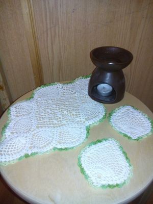 1 большая салфетка и 6 маленьких под чашечки.