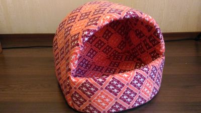 Новый лежак-домик для кошек, размеры высота 32,5, ширина 38 см, ткань фланель, дно прошито тканью спанбонд, наполнитель поролон, внутри матрасик, вынимающийся