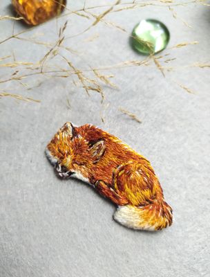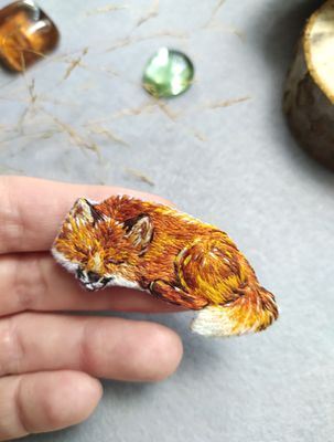Лиса брошь Что ей снится...? Лежит греется в лучах осеннего солнца. Лисичка украсит Ваш любой осенний наряд, может уютно расположится на Вашей любой одежде. Крепление броши острая, японская булавка, она не оставит следы на ваших вещах. ⚜ручная работа, художественная гладь ⚜ хлопковые нити, фетр, острая, японская булавка ⚜размер 5.5х2.5сm
