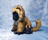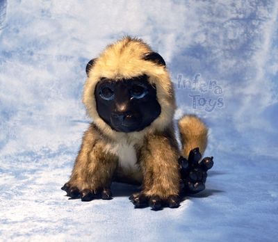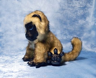 Маленький лемурчик Луни. Игрушка в смешанной технике, мордашка, лапки и ушки из полимерной глины фимо. Тело же из высококачественного итальянского меха мягкого молочного цвета с темными кончиками
