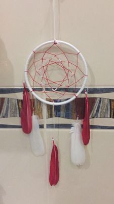 Могу предложить вам оригинальный подарок на все случаи жизни, который запомнится и будет приятен всем, даже если подарите его сами себе :) По индейской легенде плохие сны запутываются в сетке и с первыми лучами солнца сгорают, а хорошие - проходят через центральное отверстие. Обычно ловцы вешают у изголовья кровати или на люстру. Диаметр: около 15 см.