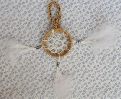 Ловец снов — индейский талисман, защищающий спящего от злых духов. Плохие сны запутываются в паутине, а хорошие проскальзывают сквозь отверстие в середине. Вешают над изголовьем спящего. В наличии. Также изготовлю на заказ в другом цвете.