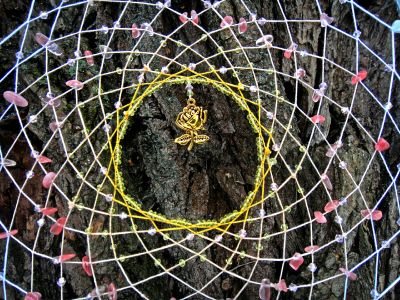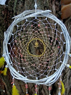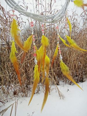 Нежный ловец в желто-розовой гамме напоминает о рассветах, игре бликов, длинных полосах теней и ярких вкраплениях света. Россыпь вишнёвого кварца и стеклянных бусин, словно прозрачных капелек росы, несёт свежесть и прохладу летнего утра. Белый обруч с лёгкой золотистой патиной, вишнёвый кварц, стеклянные и деревянные бусины, перья, металлическая подвеска, мулине. Диаметр кольца 27 см, длина без веревочки - 58 см. Цена 650 руб + 200 руб доставка почтой по России.