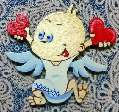 магнит на деревянной основе, высота 5,5см, можно выполнить без надписи.
