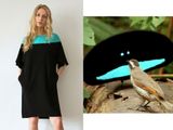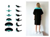 Чёрное махровое платье с "летящими" рукавами и бирюзовой кокеткой. ONE SIZE (42-46)