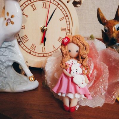 Брошка-крошка в детищем розовом платье из полимерной глины-необычный аксессуар, который дополнит самый нежный девичий образ. Высота-7 см