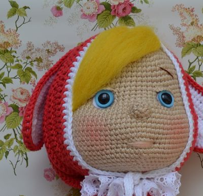 Связана крючком (хлопок, акрил) Челка из шерсти.