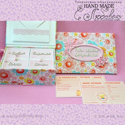 Вы всегда с удовольствием будете брать в руки эту милую шкатулку.У мамы всегда найдется , что туда положить.Бирочки из роддома, первый локон, зубик и соску малыша. В конвертик можно положить первый снимок узи.Документы о рождении не помнуться и не потеряются. Размер внутренних коробочек 5*7 см. Размер внешней коробочки 15,5*11,5 см. Размер папки для документов 13,5*19 см. Свидетельство складывается пополам и вставляется в пластиковые карманы. Набор в наличии. Мастер: Татьяна Щербакова.