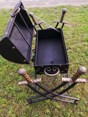Эксклюзивный мангал «Сокровища пиратов» - произведен специально для любителей легких денег, доступных женщин, рома и морской качки. Вес мангала дает некую уверенность в том, что тот, кто позарится на данный сундук или его содержимое, несколько раз подумает, прежде чем попытается его утащить. Данный мангал продается за награбленное добро, пиастры, талеры, а так же за любую другую свободно-конвертируемую валюту, которую можно проесть, пропить и прогулять. Габаритные размеры жаровни 600х320х180. Толщина металла 4мм. Крышка выполнена из металла 2 мм. Покрашен мангал термостойкой эмалью. Мангал рассчитан на 6 шампуров. Шампура в комплект не входят. Срок службы не ограничен.