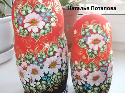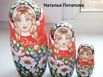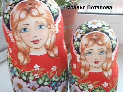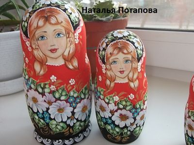 Матрешка расписана гуашью , покрыта масляным лаком в 3 слоя , очень яркая и позитивная .