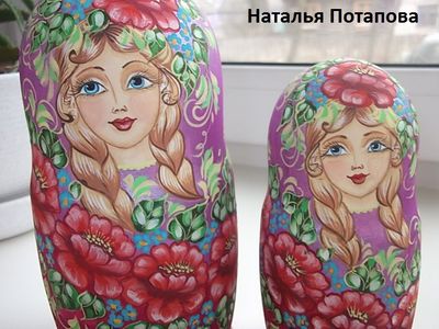 матрешка " Летняя " 5 м , выс. 17 см , полностью ручная работа , матрешка авторская , расписана гуашью . покрыта масляным лаком.
