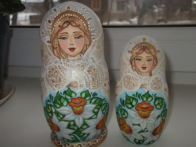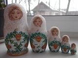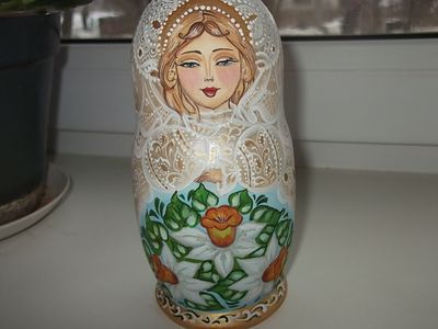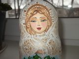 Матрешка расписана полностью вручную , не используются наклейки , расписана перламутровой краской , используются блестки , покрыта лаком . Высота 15 см