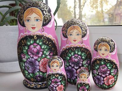 Матрешка расписана гуашью и акварелью , в росписи использована поталь