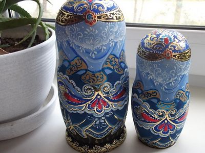 Матрешка выполнена в технике горячего тиснения , использовалась поталь золотого и красного цвета / имитация сусального золота / покрыта лаком в 4 слоя. Готовая работа.