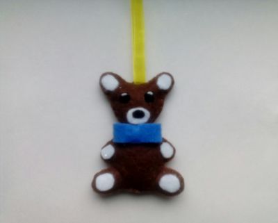 Медвежонок из фетра . Набит синтепоном . Глазки вышиты нитками мулине . В игрушку вшита ленточка . Можно вешать например на ёлку . Замечательный подарок ребёнку .