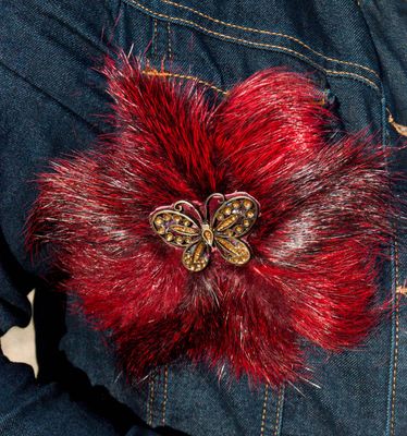 Очень яркий декор - брошь из натурального меха с декором, яркий аксессуар для сумок, одежды, шляп, шарфа... #декор #брошь #цветыброши #натуральныймех #брошьизмеха